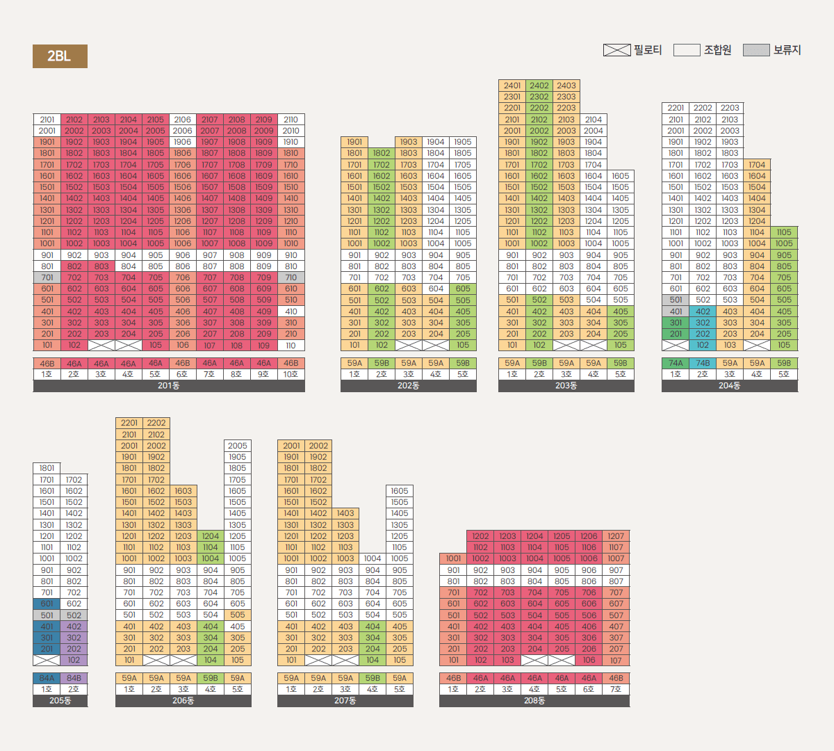 2블록은 201동부터 208동까지 배치되어 있습니다.