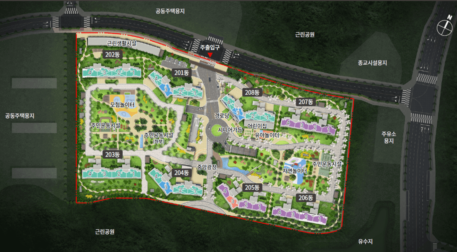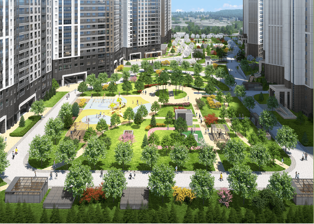 중앙광장은 주민공동시설이고 앞으로 근린공원과 연결되도록 광장을 조성하도록 한다고 합니다.
